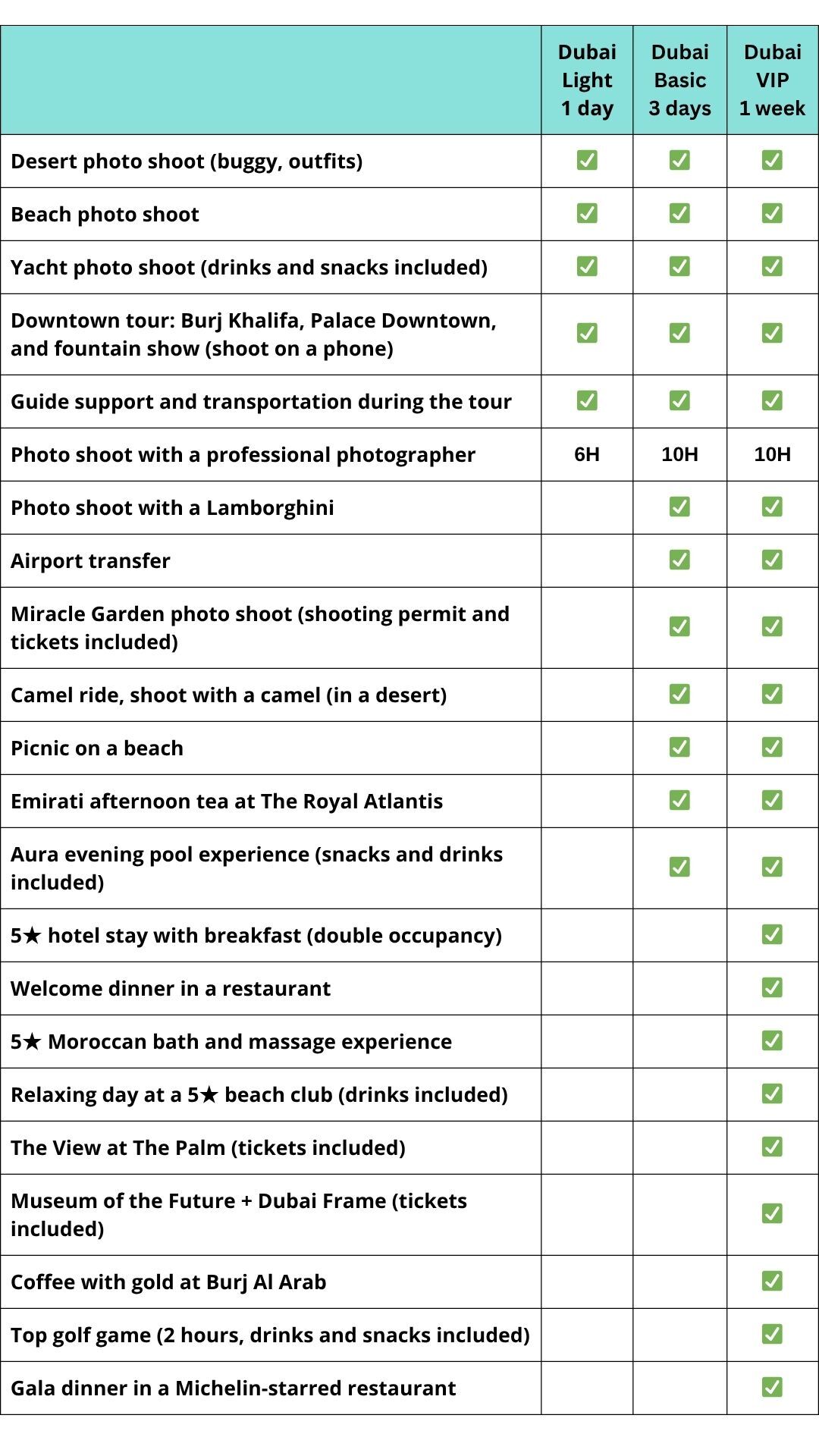 Morning — photoshoot walk at Madinat Jumeirah. During the day — golf club for all skill levels. Evening — yacht photoshoot with a professional photographer, drinks and snacks included, 2 hours of unforgettable shots on the water.